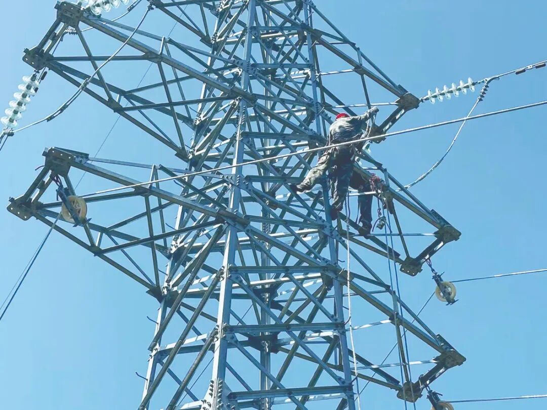 为确保工程安全高效推进,在面对高温天气给高空作业带来严峻考验时,施工团队采取“轮换作业+点对点盯防”模式,每基电力铁塔下均安排专人配合,既负责工具材料传递,又实时监测高空作业人员状态,反复叮嘱:“若有头晕等不适立即下塔。”全力防范中暑风险。同时,这个团队严格落实各项安全管理制度,施工负责人在每次作业前仔细排查安全隐患、填写工作票,并在施工作业中全程监护现场,及时纠正不安全行为。负责高处作业的人员均穿戴软底鞋,并系好双保险安全带,工具材料通过绳索传递,坚决杜绝抛掷行为,始终保持人身与邻近带电导线的工作安全距离,确保施工全程零安全事故。“我们这次的主要任务是更换架设14000米钢芯铝绞线,因为地势陡峭、植被茂密,不仅搬运工具时格外费时费力,在架设导线时也要避开复杂地形、农作物等障碍,难度远超我们以往任何一项工程。”张宇说。